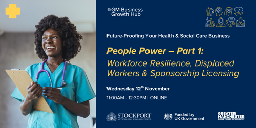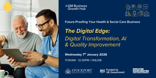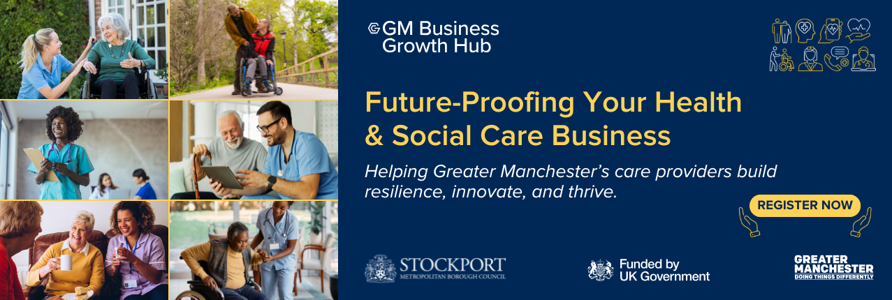 Please note: This webinar series is exclusively for businesses based in Stockport. If you're in the Health & Social Care sector elsewhere in Greater Manchester, we still offer tailored support, get in touch to find out how we can help your business grow. BGH@growthco.uk | 0161 359 3050.