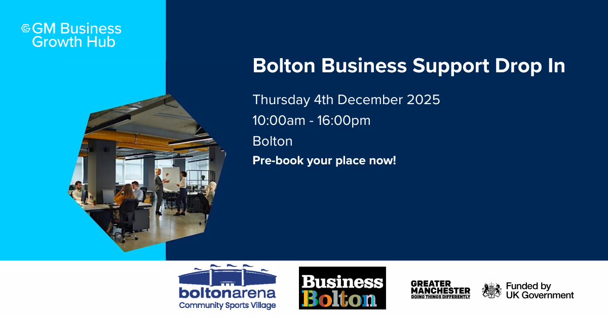 Delivered fully funded as part of the Greater Manchester Business Growth Hub service, supported by the Greater Manchester Combined Authority (GMCA) and the UK Government.