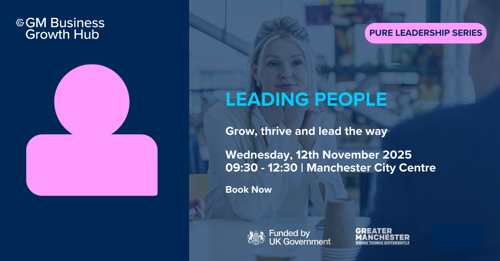 Aimed at motivated Leaders and Professionals, these in-person workshops have been crafted by our GM Business Growth Hub Leadership experts, especially for Greater Manchester businesses. During the workshop we’ll present a wide variety of take away tools and techniques that can be personalised to your own leadership goals and challenges.