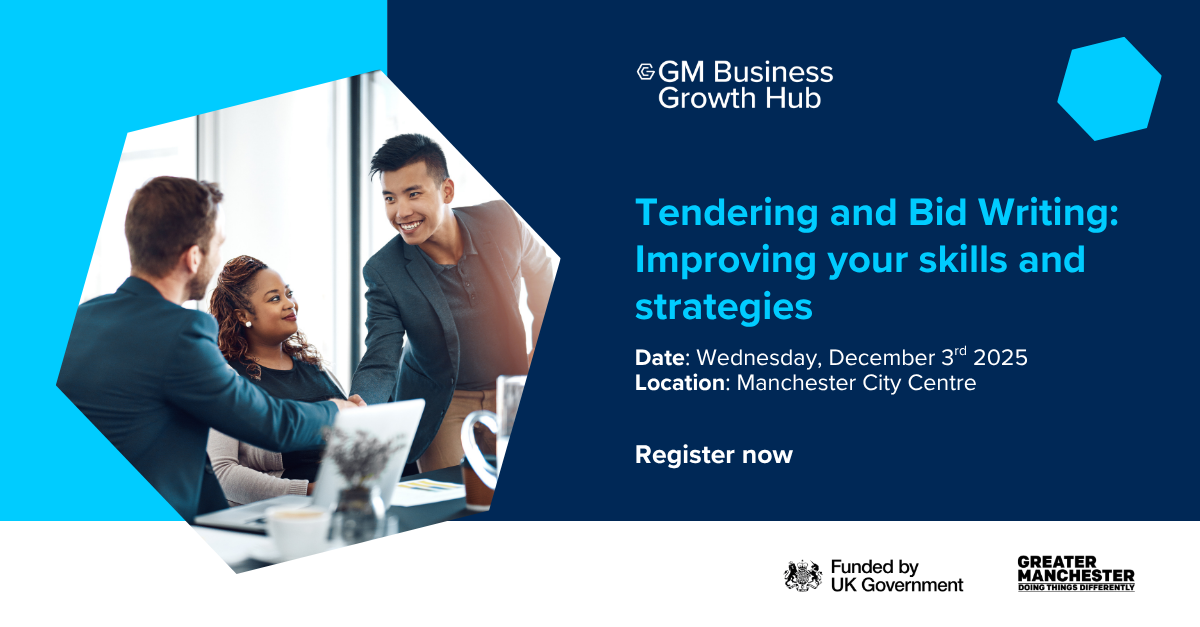 As this workshop is fully-funded, businesses are subject to funders' eligibility criteria. Please keep an eye out for communication from our Enquiry team at GM Business Growth Hub who will discuss your eligibility and complete paperwork. If your place is confirmed, you will receive an email from us with further details.