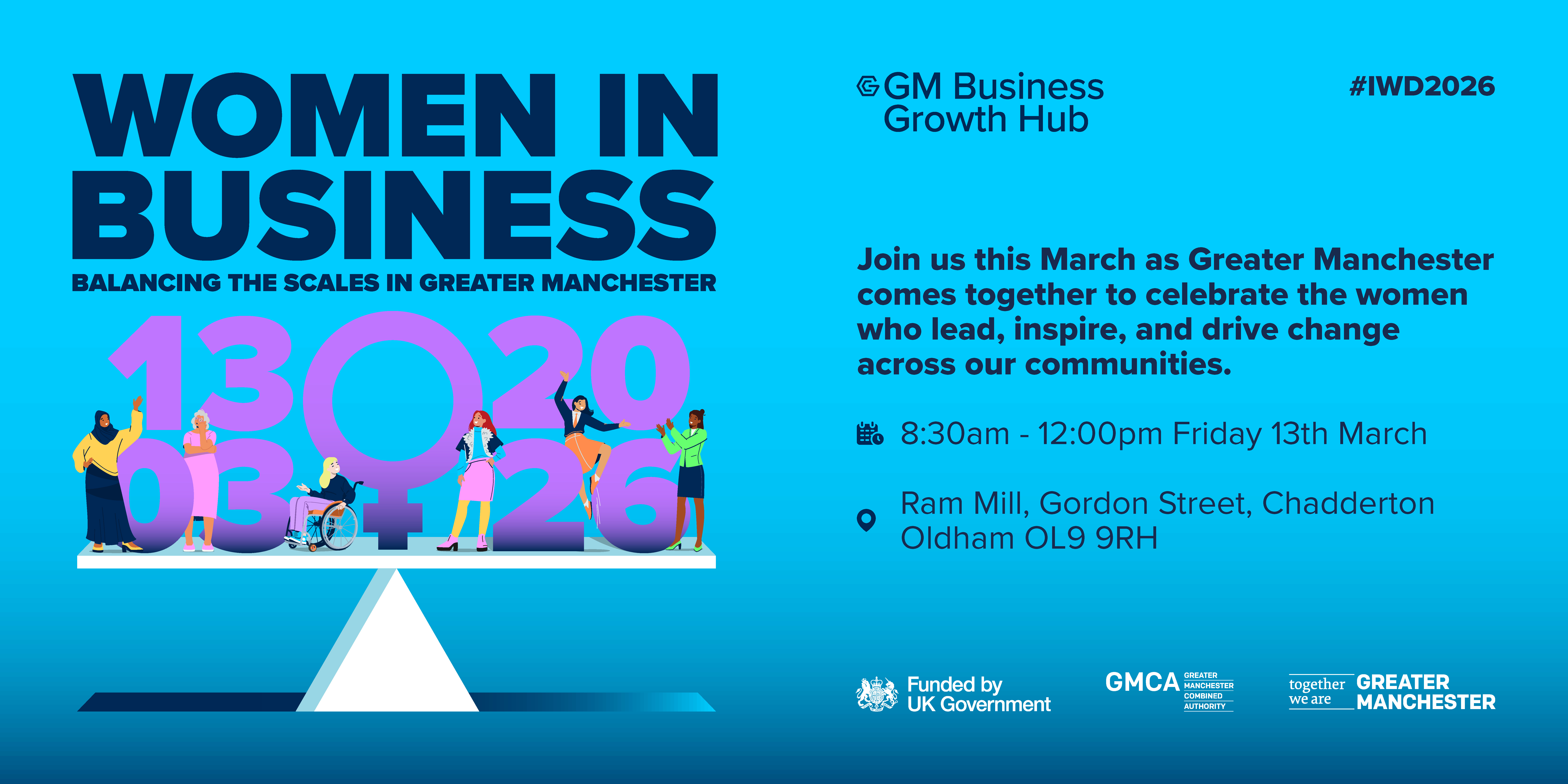 GM Business Growth Hub will host the first event in our International Women’s Day series on Friday 13th March at Ram Mill in Oldham. With the UN theme #BalanceTheScales at the heart of this year’s event, we’re celebrating fairness, opening doors to opportunity, and uniting people to remove the barriers that hold women and girls back