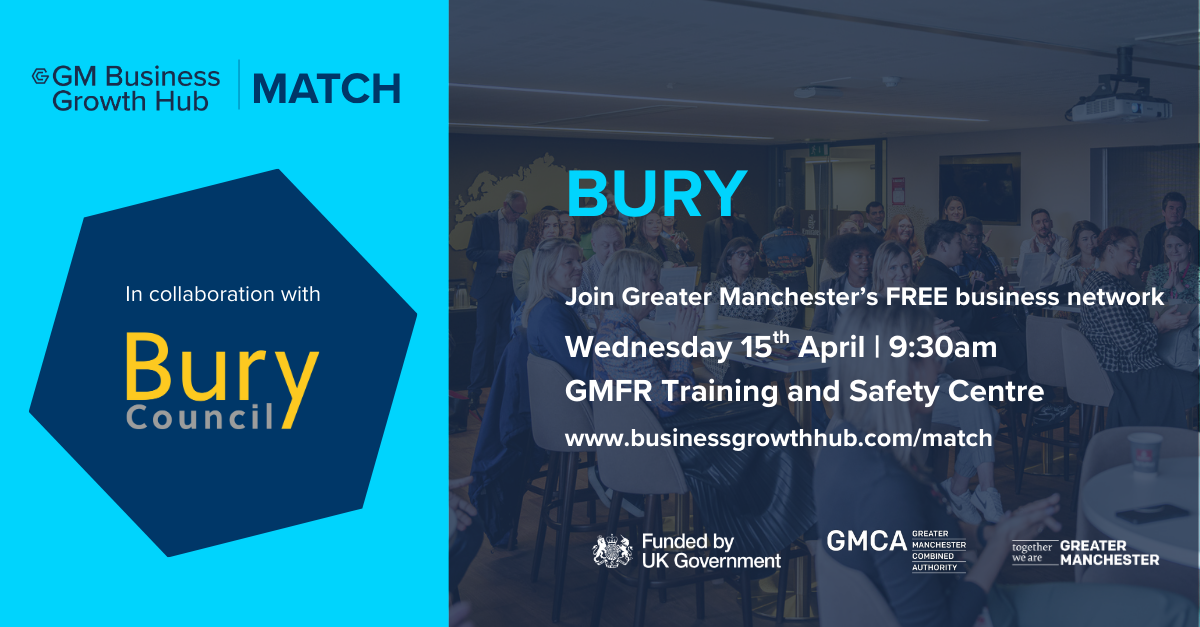 Representatives from GM Business Growth Hub and Bury Council will be on hand to explore the bespoke business support available to your business too.