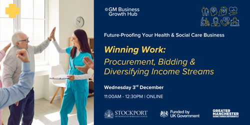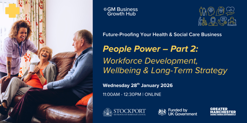 Please note: This webinar series is exclusively for businesses based in Stockport. If you're in the Health & Social Care sector elsewhere in Greater Manchester, we still offer tailored support, get in touch to find out how we can help your business grow. BGH@growthco.uk | 0161 359 3050.